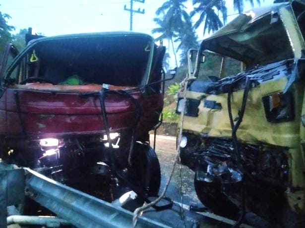 “Jadi, truk merah yang dikemudikan Robin ini melebar, dikarenakan kondisi cuaca hujan dan jalan licin, sehingga tergelincir masuk ke jalur arah berlawanan dan langsung menabrak truk kuning yang dikemudikan Sulaimi,” katanya.(**)