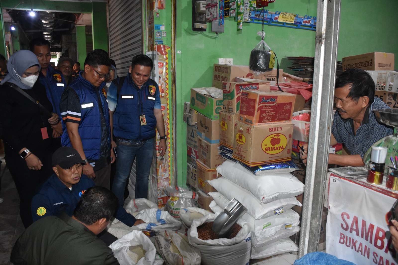 Direktorat Kriminal Khusus (Ditreskrimsus) dan Tim Satgas Pangan Polda Bangka Belitung (Babel) melakukan pengecekan harga bahan pokok (bapok) di pasar dan sejumlah gudang distributor di Pangkalpinang, Sabtu (24/2). Foto: Istimewa