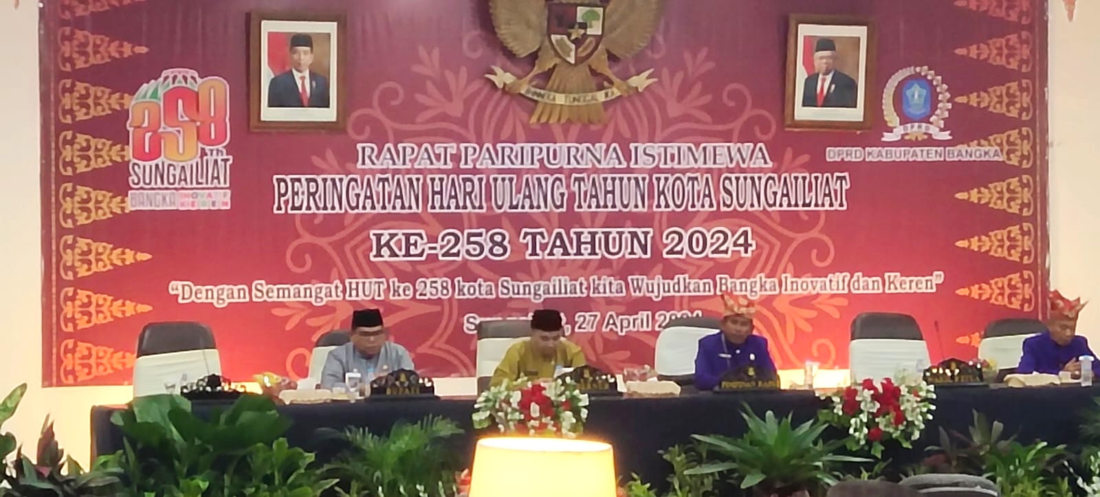 WARTABANGKA.ID, SUNGAILIAT – DPRD Kabupaten Bangka menggelar rapat paripurna Istimewa dalam rangka memperingati Hari Ulang Tahun ke-258 Kota Sungailiat.