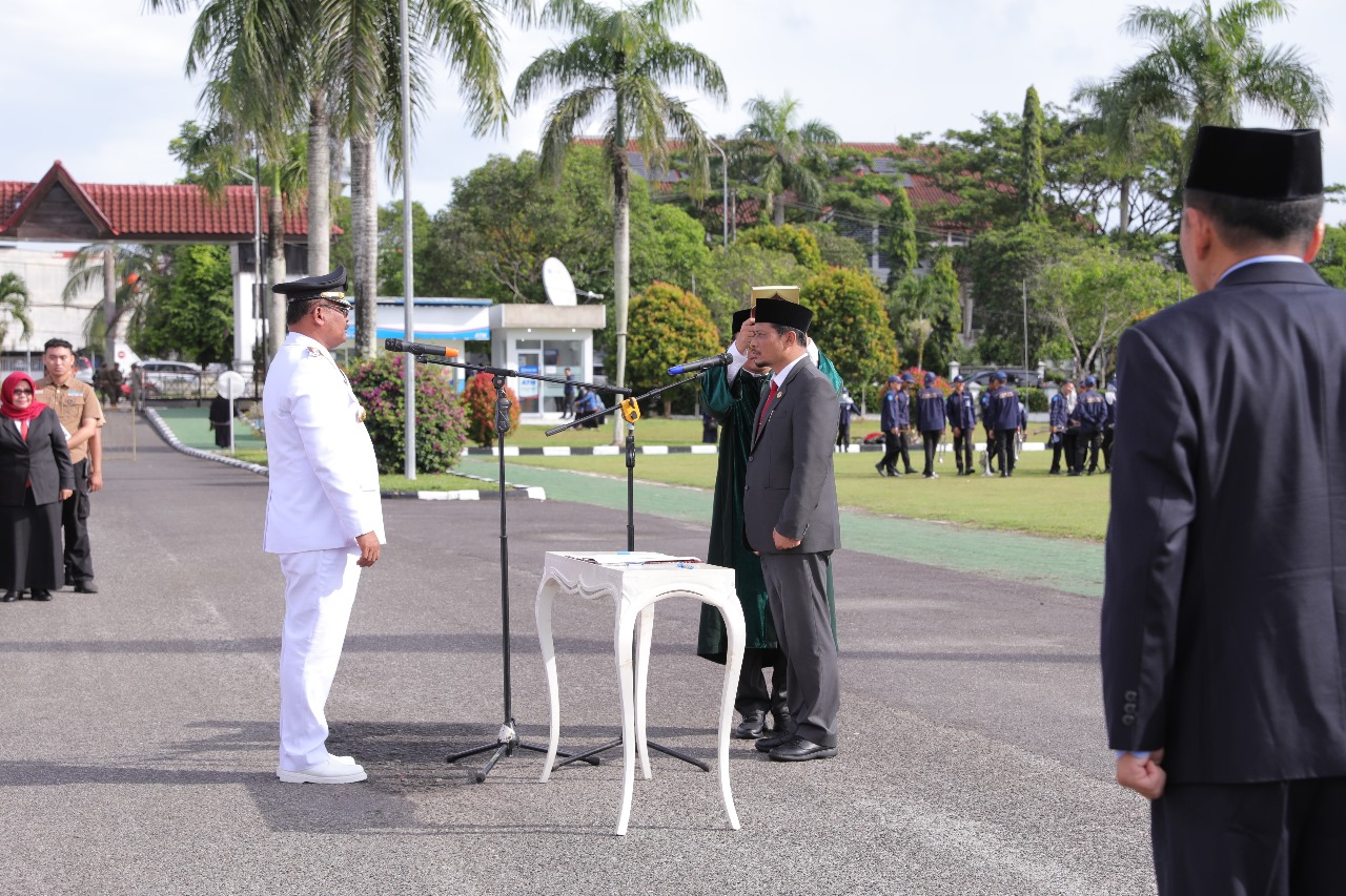 Pj Gubernur Babel, Safrizal melantik Fery Afriyanto sebagai Pj Sekretaris Daerah (Sekda) Babel di halaman Kantor Gubernur Babel, Senin (29/4).Foto: IST