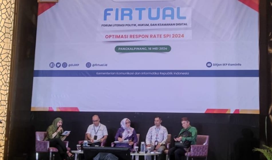 WARTABANGKA.ID, PANGKALPINANG – Meraih perolehan rata-rata nilai SPI terbagus tingkat kota se-Indonesia tahun 2023, Pj Wali Kota Pangkalpinang Lusje Anneke Tabalujan menjadi narasumber kegiatan Forum Literasi Politik, Hukum dan Keamanan Digital dengan Tema “Optimasi Respon Rate SPI 2024” Kota Pangkalpinang di Hotel Novotel Kota Pangkalpinang, Kamis (16/5).