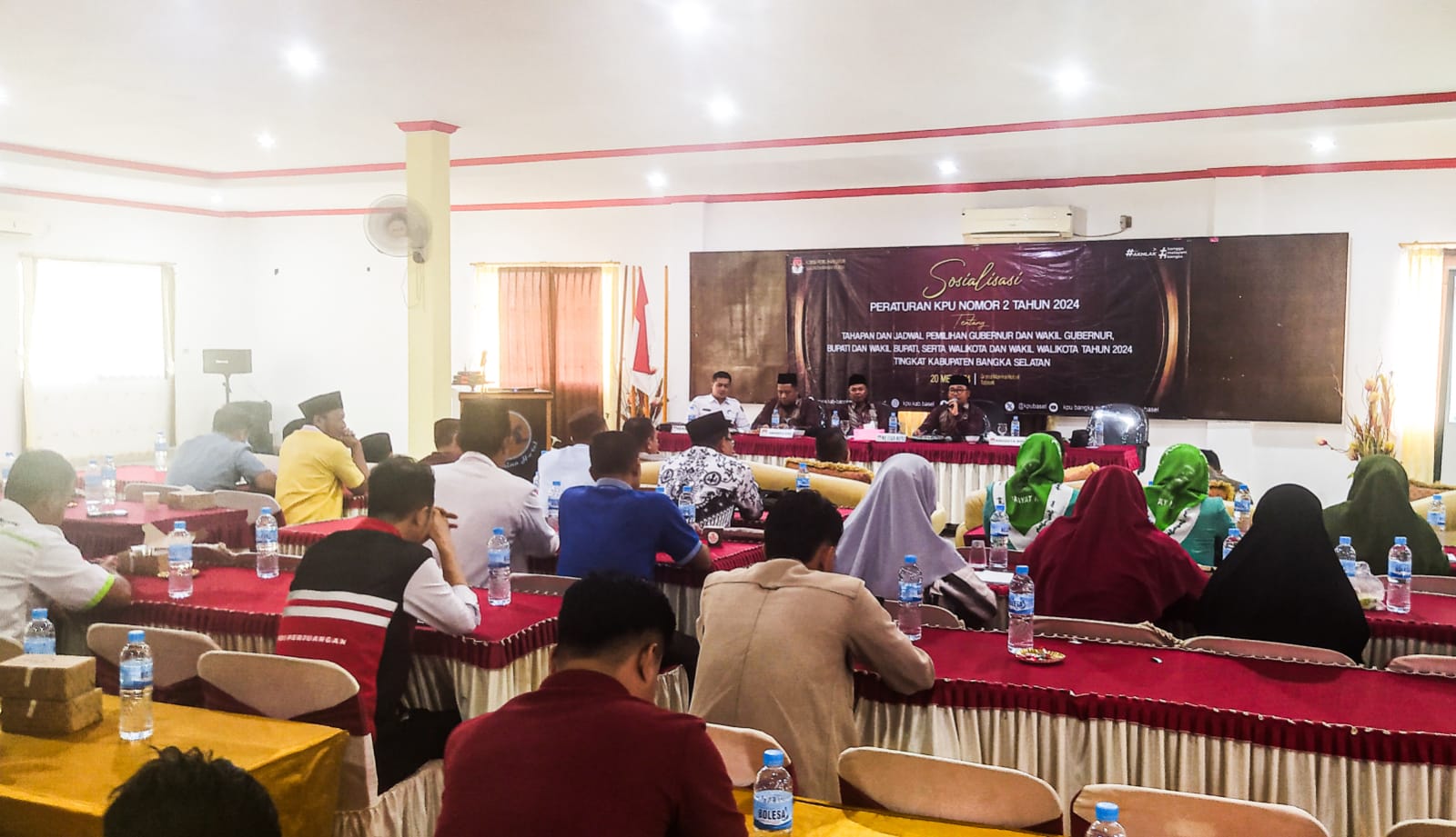 WARTABANGKA.ID, TOBOALI – Menjelang pelaksanaan tahapan dan jadwal Pilkada, Komisi Pemilihan Umum (KPU) Kabupaten Bangka Selatan (Basel) menggelar kegiatan sosialisasi Peraturan KPU nomor 2 tahun 2024.