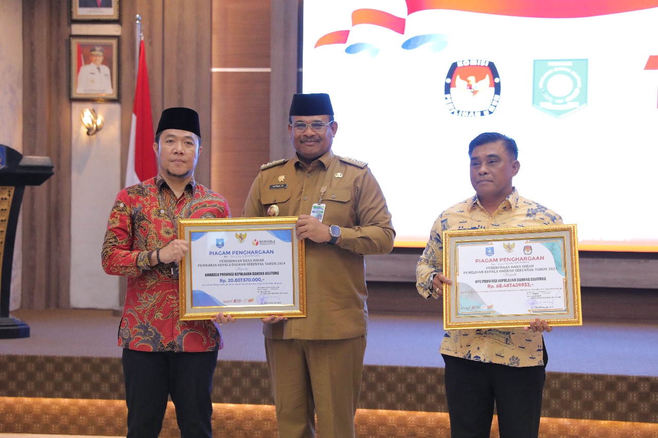 Hal yang sama dilakukan NPHD dengan TNI dan Polri untuk bantuan dana hibah Pilkada Serentak Tahun 2024. Selain itu, agenda lainnya penyerahan piagam dana hibah kepada KPU dan Bawaslu. Kegiatan tersebut dilaksanakan di Ruang Pasir Padi Kantor Gubernur Kepulauan Babel, Senin (3/6).
