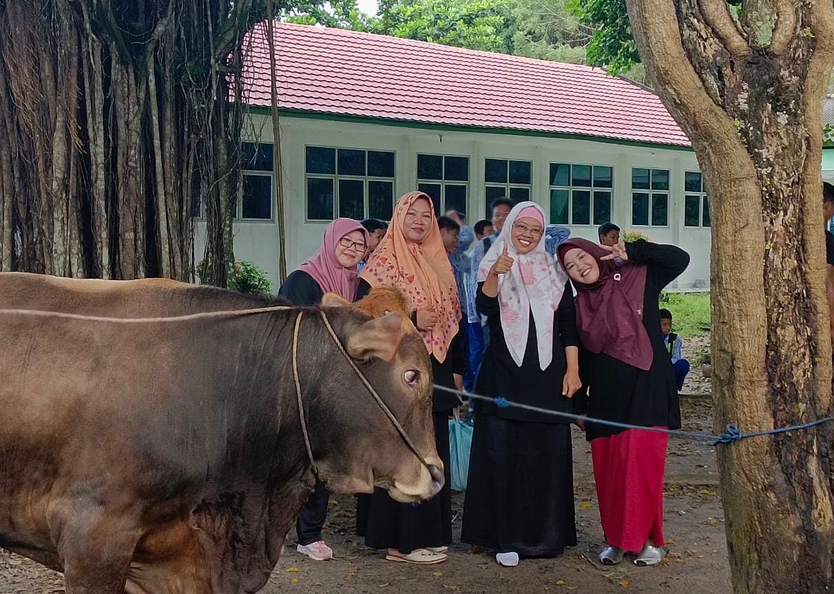 “Alhamdulillah, pada momentum Iduladha 1445 Hijriah ini, teman-teman di sekolah ikut melakukan pemotongan hewan kurban, seperti hari ini di SMPN 1 Simpang Katis dan SMPN 1 Koba,” ucap Algafry.