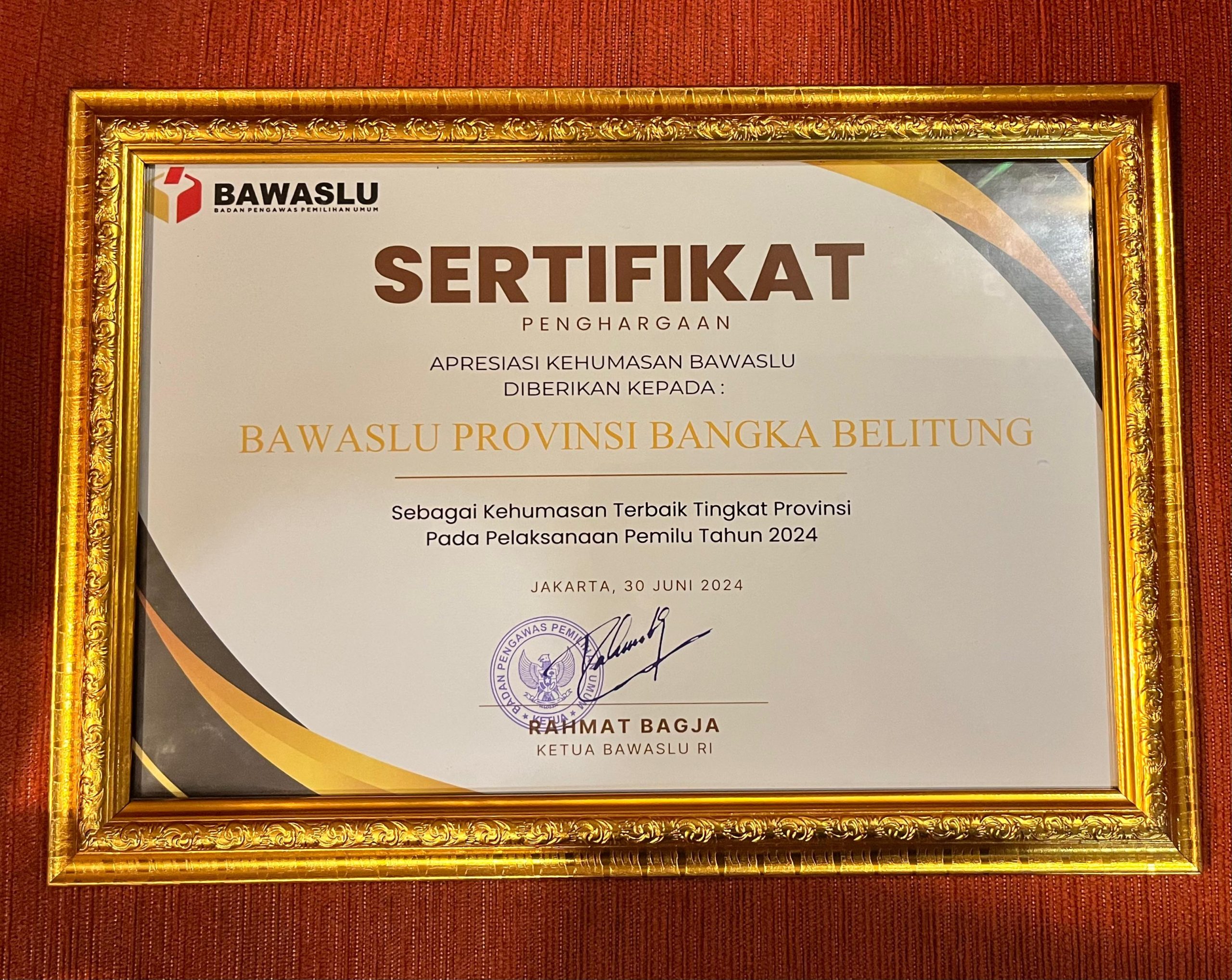 Bawaslu Babel berhasil meraih penghargaan sebagai Kehumasan Terbaik Tingkat Provinsi dalam pelaksanaan Pemilu 2024. Penghargaan ini mencerminkan dedikasi dan upaya Bawaslu Babel dalam menjaga transparansi dan akuntabilitas selama proses Pemilu berlangsung.