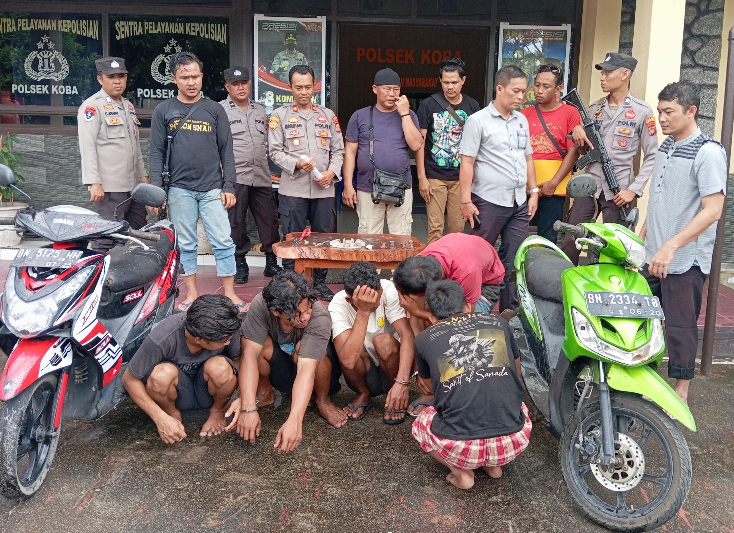 “Kelima pelaku berhasil kita tangkap yang merupakan warga asli sini (Koba), 4 orang dari Kelurahan Koba dan 1 orang dari Desa Nibung, yang mana penangkapan kita lakukan 16 Juli 2024, dari siang hingga sore hari,” sambungnya.