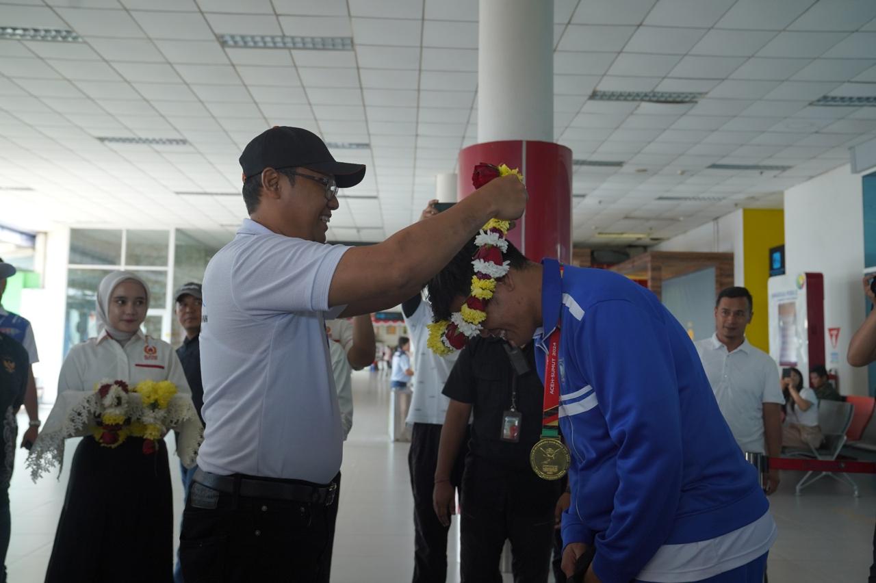 Apresiasi datang dari sejumlah pihak, tak terkecuali Pj (Penjabat) Gubernur Kep. Babel Sugito yang menyambut kepulangan salah satu pahlawan olahraga Kep. Babel peraih medali emas cabang olahraga (Cabor) Hapkido, Erwinsyah beserta pelatih dan rombongan di Terminal Kedatangan Bandara Depati Amir, Minggu (15/09/2024).