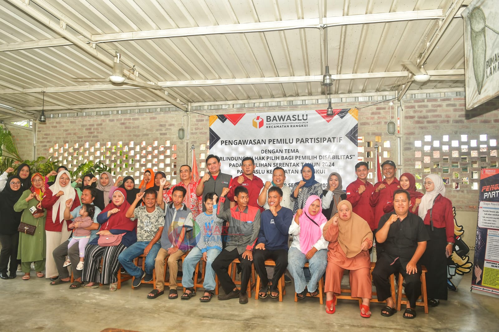 Dalam kegiatan tersebut, turut dihadiri Ketua Panwascam Rangkui Danu Pebbiyando, Anggota Panwascam Rangkui Yunita, narasumber, Iskandar, Camat Rangkui dan penyandang disabilitas. (*/ryu)