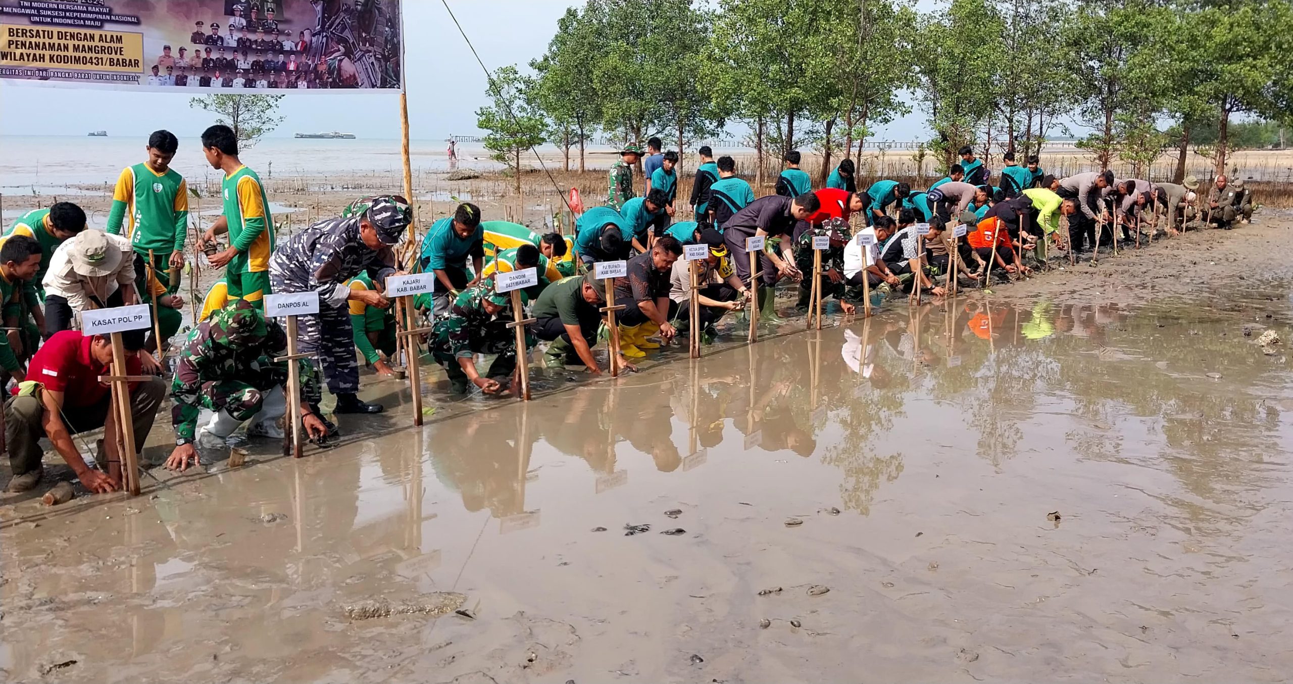WARTABANGKA.ID, MENTOK – Personel Komando Distrik Militer (Kodim) 0431/Bangka Barat melakukan penanaman pohon di pesisir Pantai Tanjung Pakdan, Kampung Teluk Rubiah, Kecamatan Mentok, pada Rabu (2/10).