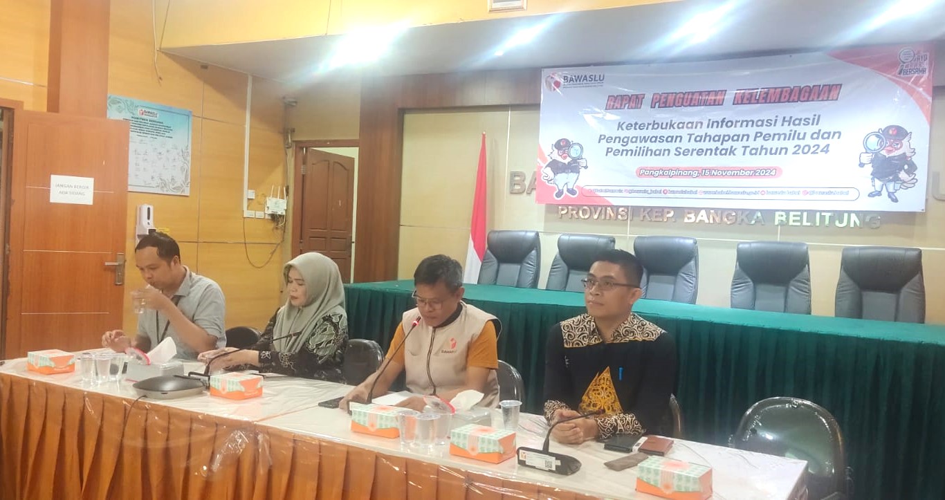 WARTABANGKA.ID, PANGKALPINANG – Badan Pengawas Pemilu (Bawaslu) Provinsi Kepulauan Bangka Belitung (Babel) menggelar rapat penguatan kelembagaan terkait keterbukaan informasi hasil pengawasan menjelang tahapan Pemilu dan Pemilihan Serentak tahun 2024.