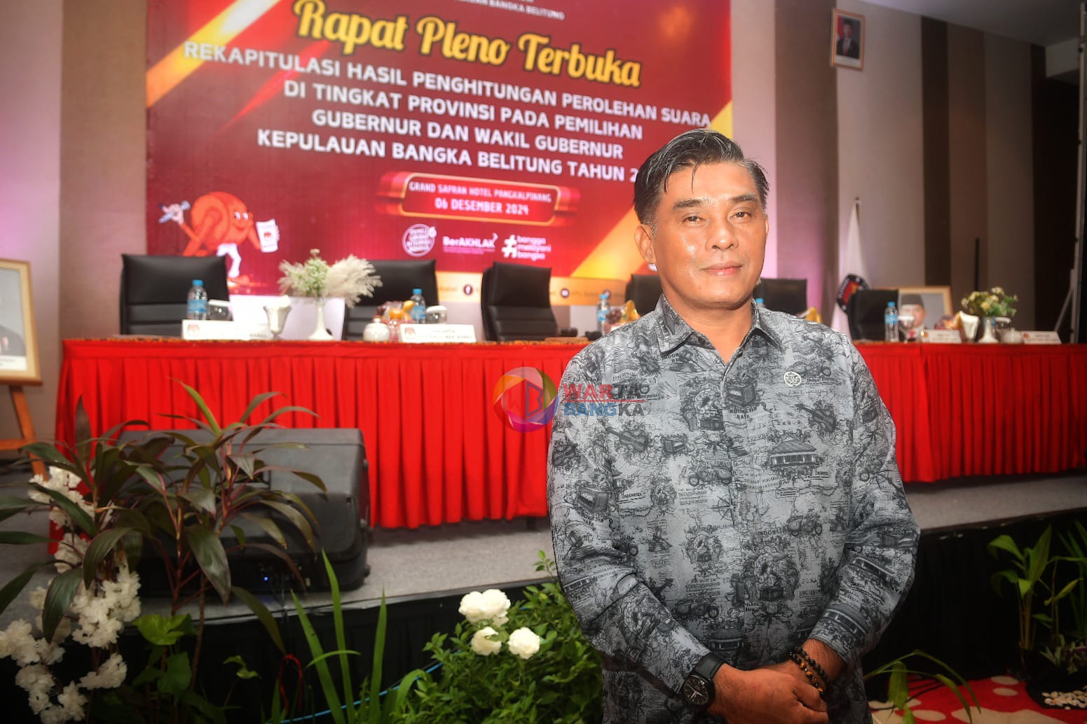 Hal itu disampaikan Ketua Komisi Pemilihan Umum (KPU) Provinsi Kepulauan Bangka Belitung (Babel) Husin disela-sela rapat pleno terbuka rekapitulasi penghitungan perolehan suara tingkat provinsi pemilihan Gubernur dan Wakil Gubernur Babel Tahun 2024, di Ballroom Grand Safran, Jumat (6/12) malam.