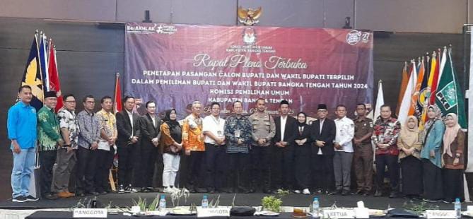 WARTABANGKA.ID, PANGKALAN BARU – KPU Kabupaten Bangka Tengah (Bateng) menggelar rapat pleno terbuka penetapan pasangan calon Bupati dan Wakil Bupati terpilih dalam pemilihan Bupati dan Wakil Bupati Bangka Tengah tahun 2024 di Soll Marina Hotel, Kecamatan Pangkalanbaru pada Kamis, (9/1/2025).