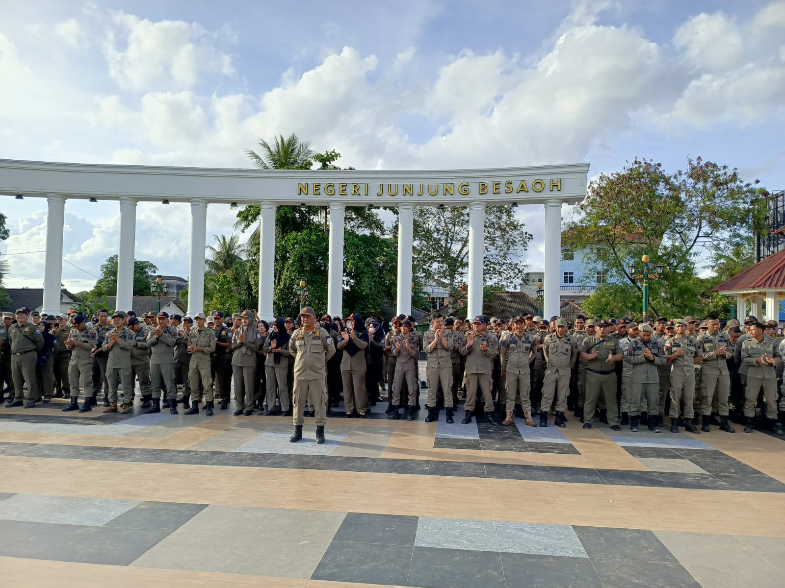 “Tujuan apel ini adalah untuk menguatkan semangat kebersamaan dalam menghadapi tantangan tugas ke depan, baik dalam penegakan perda, pemeliharaan ketertiban umum, pengamanan kawasan dan aset hasil pembangunan, serta pelayanan publik yang lebih responsif,” katanya.