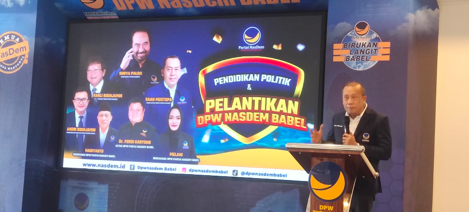 Adapun Ketua DPW Partai Nasdem Babel dijabat Fendi Haryono, Sekretaris Hadiyanto dan Bendahara Melani.
