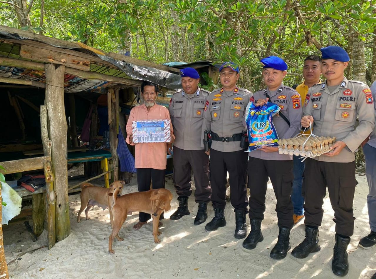 Kegiatan yang dipimpin langsung Kasat Polairud Polres Basel Iptu Mulia Renaldi diikuti oleh personel ini mendatangi kediaman Kodri (65) yang tinggal di sebuah gubuk di Pesisir Pantai Kelisut.