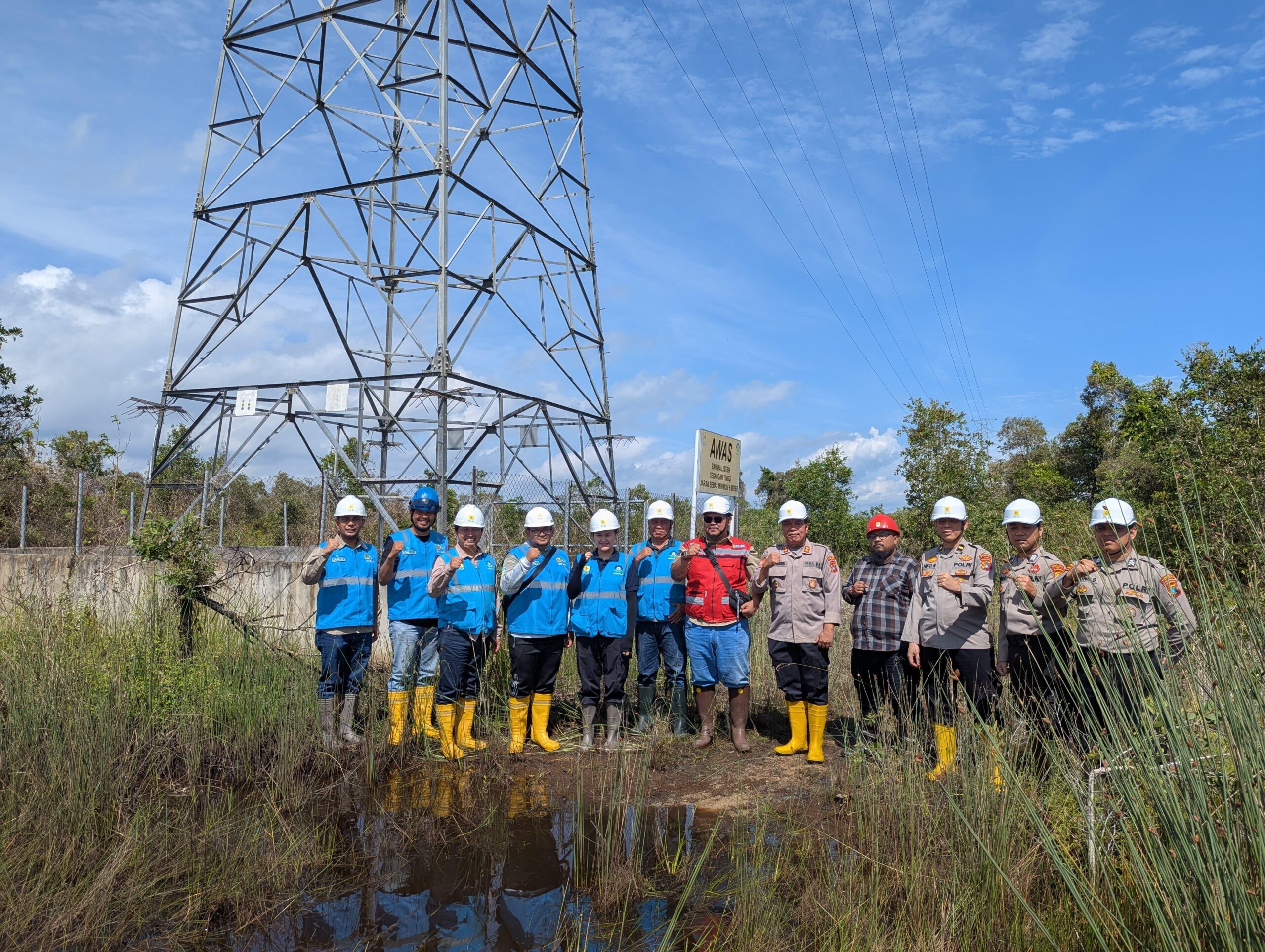 WARTABANGKA.ID – PT PLN (Persero) Unit Induk Wilayah (UIW) Bangka Belitung bersama Direktorat Pengamanan Objek Vital (DITPAMOBVIT) Polda Babel melakukan inspeksi terhadap kondisi Tower Saluran Udara Tegangan Tinggi (SUTT) 150 kV di wilayah Sungai Marbuk, Desa Nibung, Kabupaten Bangka Tengah yang menghubungkan jaringan listrik dari Gardu Induk Koba ke Gardu Induk Toboali. Inspeksi ini dilakukan sebagai langkah antisipasi terhadap potensi gangguan akibat aktivitas penambangan timah masyarakat yang beroperasi disekitar tower.