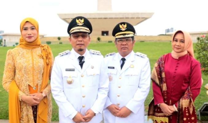 Mengenakan pakaian resmi sebagai bupati dan wakil bupati, Algafry Rahman dan Efrianda berada di antara para kepala daerah se-Indonesia yang dilantik dan diambil sumpahnya.