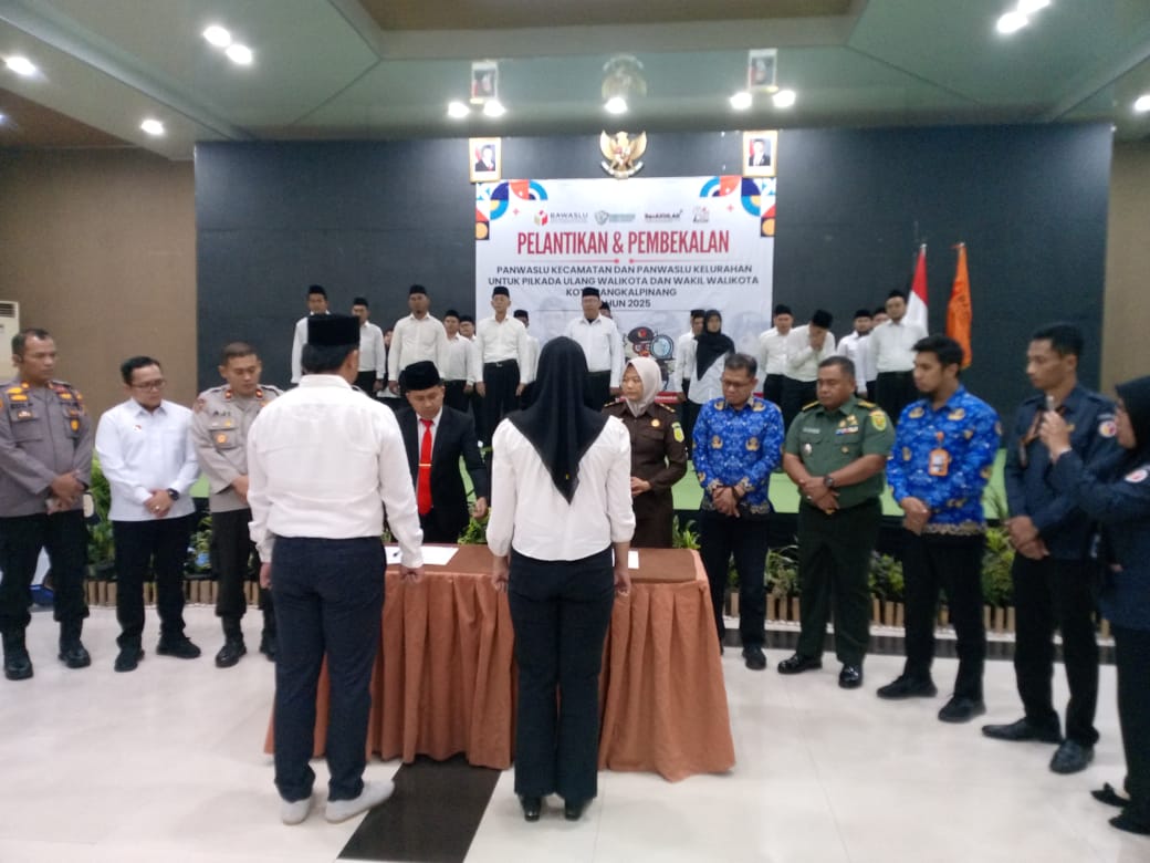 Asisten Pemkot Pangkalpinang, Ahmad Subekti dalam sambutannya mengucapkan selamat kepada anggota Panwascam dan panwas kelurahan yang di lantik untuk menjalankan tugas pengawasan pelaksanaan Pilkada ulang tahun 2025.