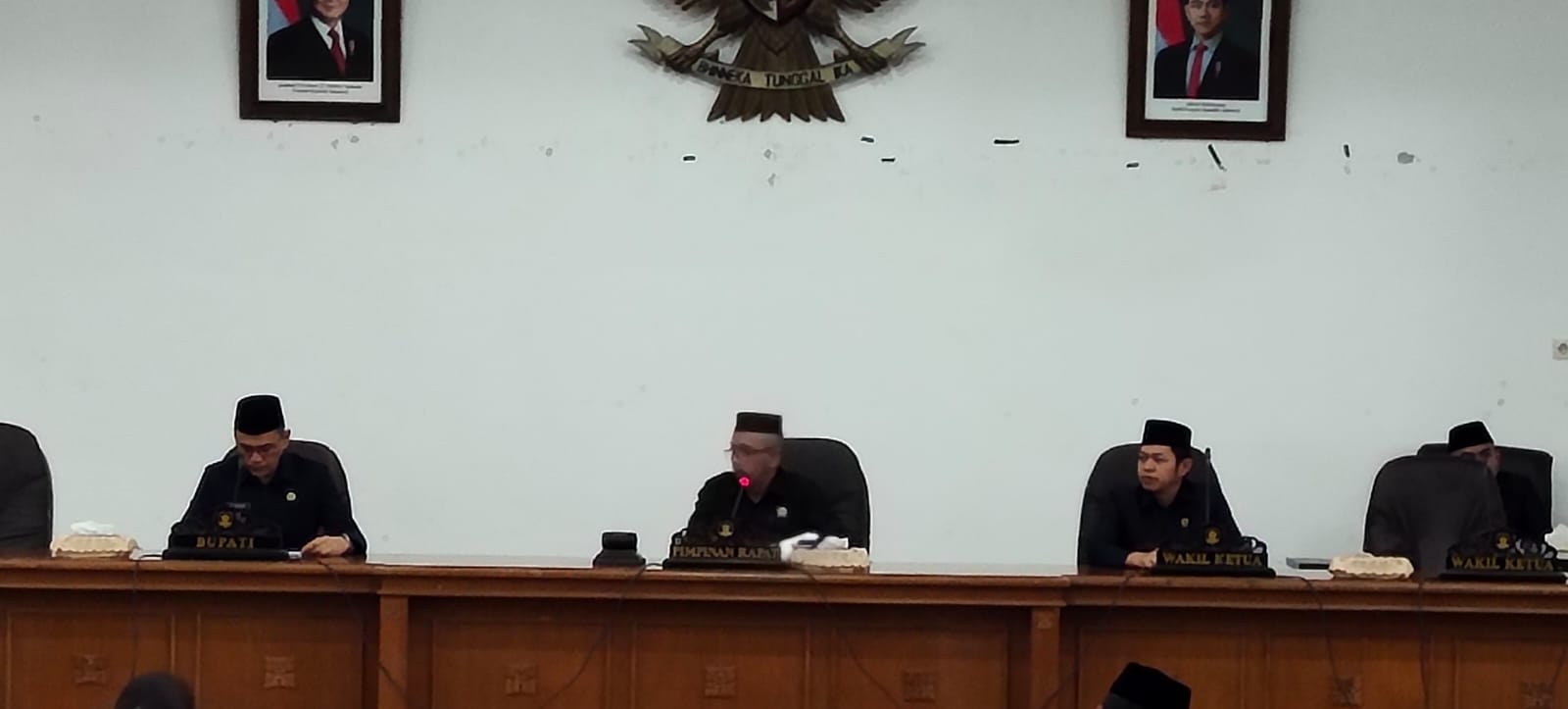 Ketua DPRD Kabupaten Bangka Jumadi dalam sambutannya mengatakan Rapat Paripurna Penyampaian LKPJ Bupati Bangka Tahun 2024 mempedomani peraturan pemerintah nomor 13 tahun 2019.