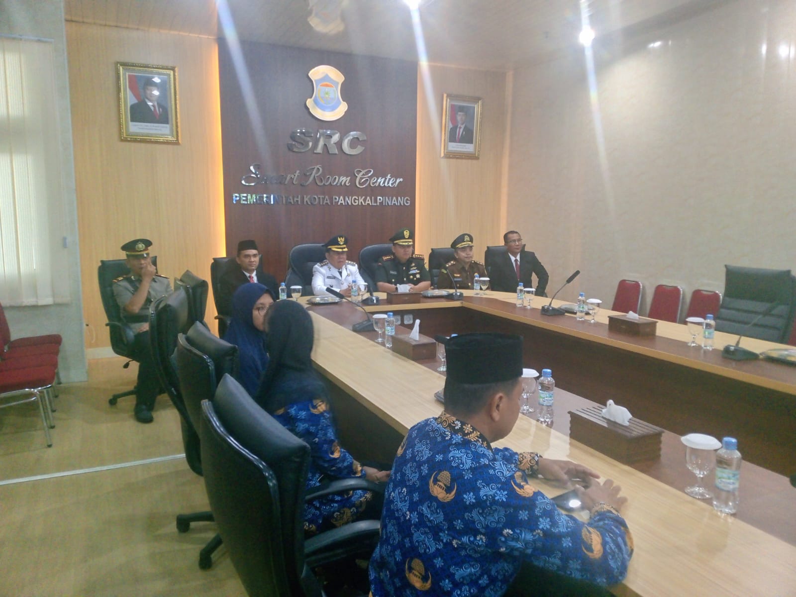 Zoom meeting dilaksanakan di Ruang Rapat SRC Kantor Wali Kota Pangkalpinang, Jumat (25/4).