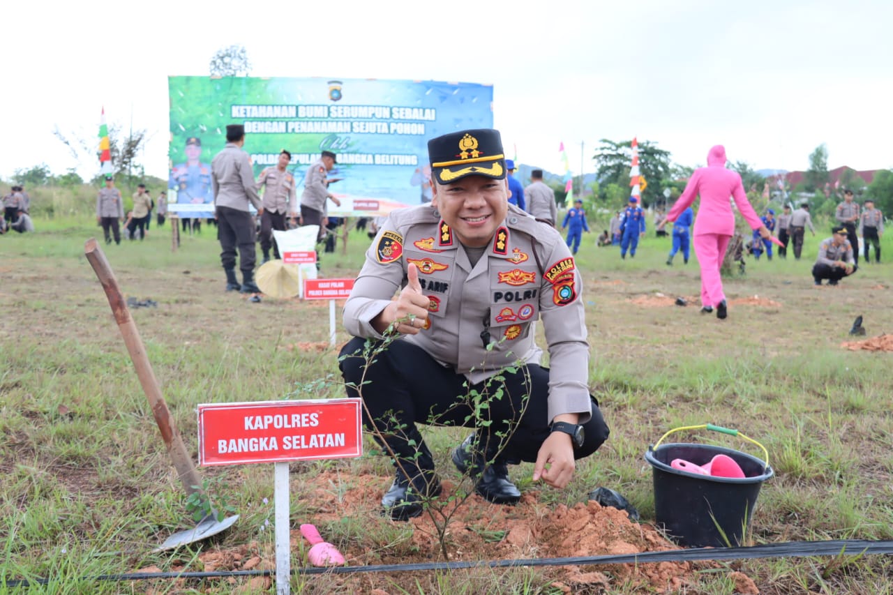 Gencarkan Program Ketahanan Bumi Serumpun Sebalai, Polda Babel Tanam 3.500 Bibit Tanaman