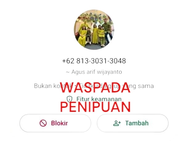 Pelaku diketahui menggunakan nomor palsu +62 813 3031 3048 untuk menghubungi masyarakat dengan menyamar sebagai Kapolres. Parahnya, oknum ini menggunakan foto profil yang diambil dari akun Facebook pribadi.