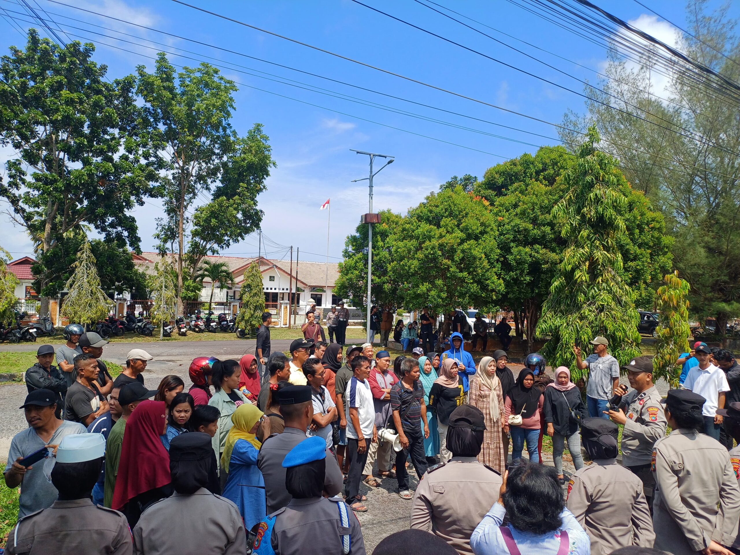 Puluhan personel Polres Bangka Barat berjaga – jaga di depan pintu gerbang kantor DPRD untuk melakukan pengamanan.
