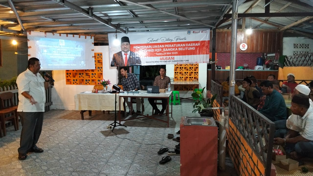 WARTABANGKA.ID, TOBOALI – Anggota DPRD Provinsi Kepulauan Bangka Belitung (Babel) dari Fraksi PKS, Musani mengadakan kegiatan penyebarluasan Peraturan Daerah (Perda) Nomor 2 tahun 2017 tentang Pengelolaan Sumber Daya Kelautan dan Perikanan di Toboali, Sabtu (24/5).