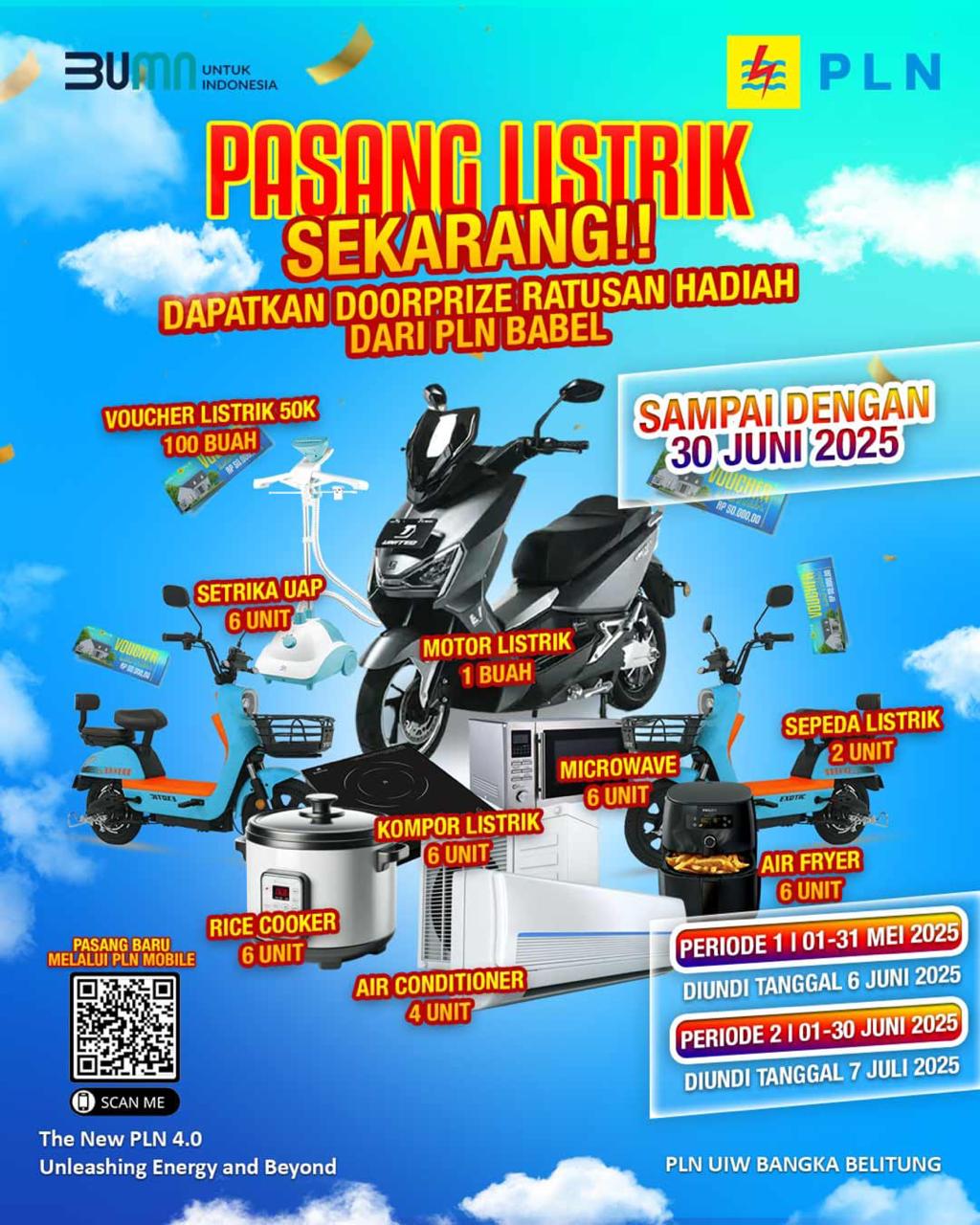 Program yang akan digelar secara live di Instagram @pln_bangkabelitung dan @gawe_gile pada Selasa, 3 Juni 2025 pukul 14.00 WIB ini menjadi bagian dari kampanye promosi layanan pasang baru listrik yang telah berlangsung sejak Mei hingga Juli 2025.