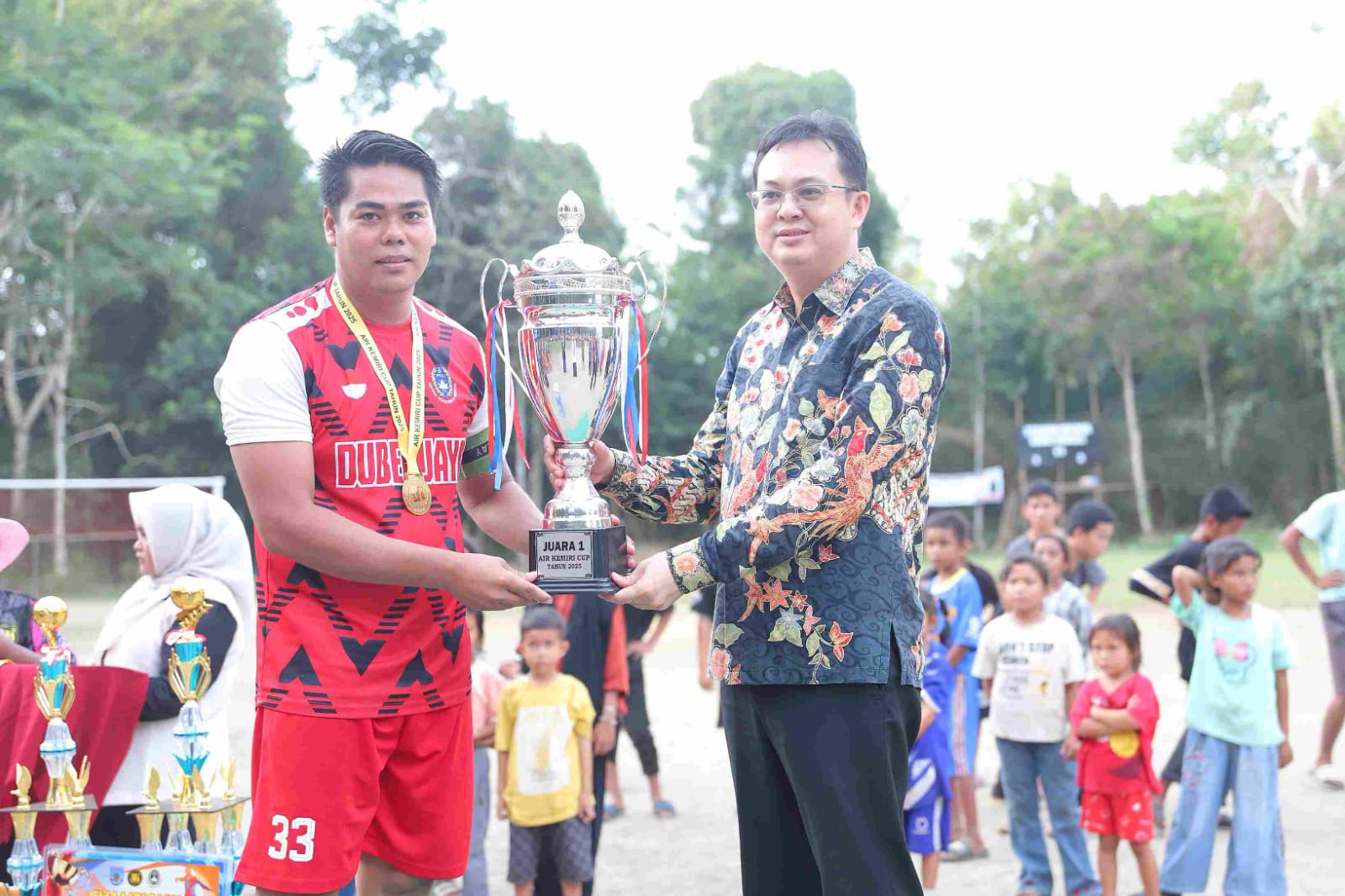 Penutupan berlangsung meriah dan penuh semangat kebersamaan. Tim kesebelasan Belit Putra keluar sebagai juara Turnamen Air Kemiri Cup 2025. (Komdigi)