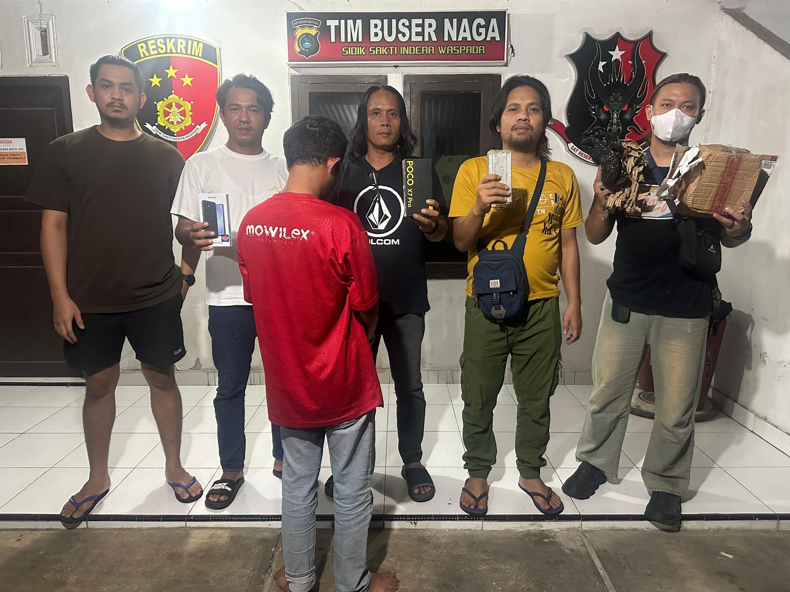 Tim Buser Naga Polresta Pangkalpinang berhasil meringkus pelaku RF (33) pada hari Kamis tanggal 12 Juni 2025 sekira pukul 18.00 Wib di kantor JNE Pangkalpinang.