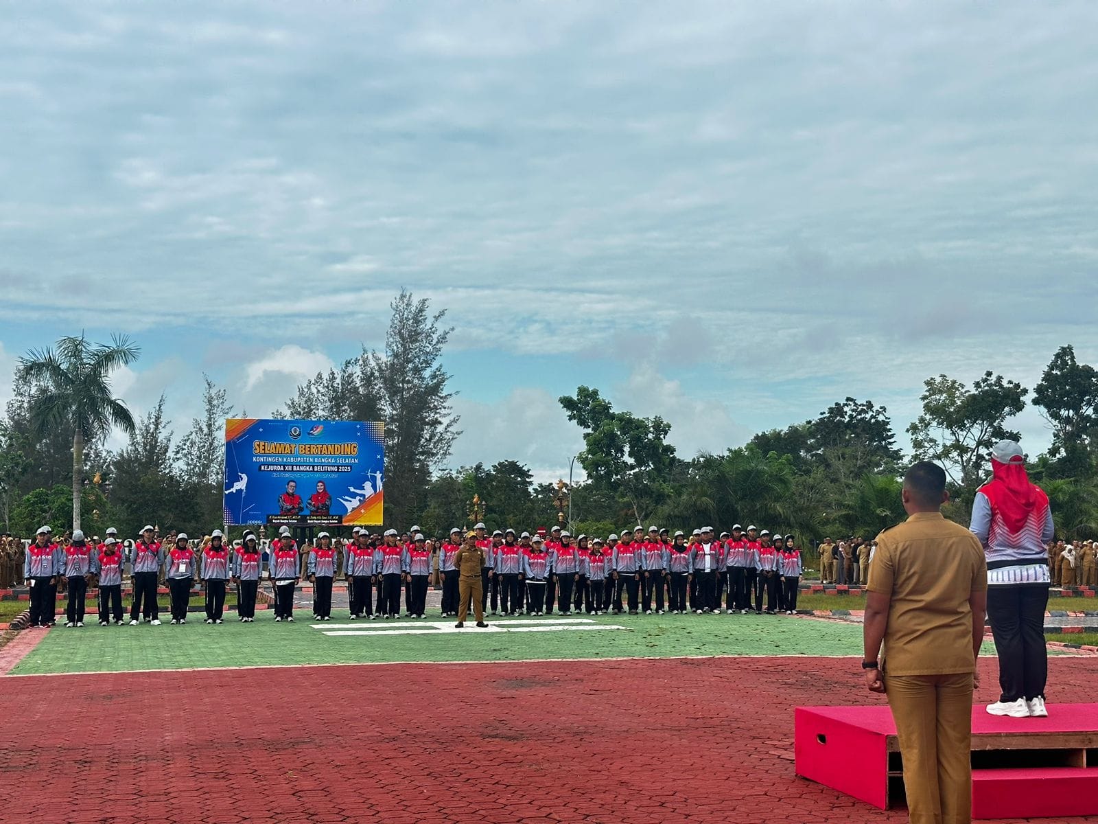 Dalam acara tersebut, sekaligus seluruh peserta apel memberikan doa dan semangat kepada para atlet yang akan membawa nama Bangka Selatan di kancah Kejurda XII tahun ini.