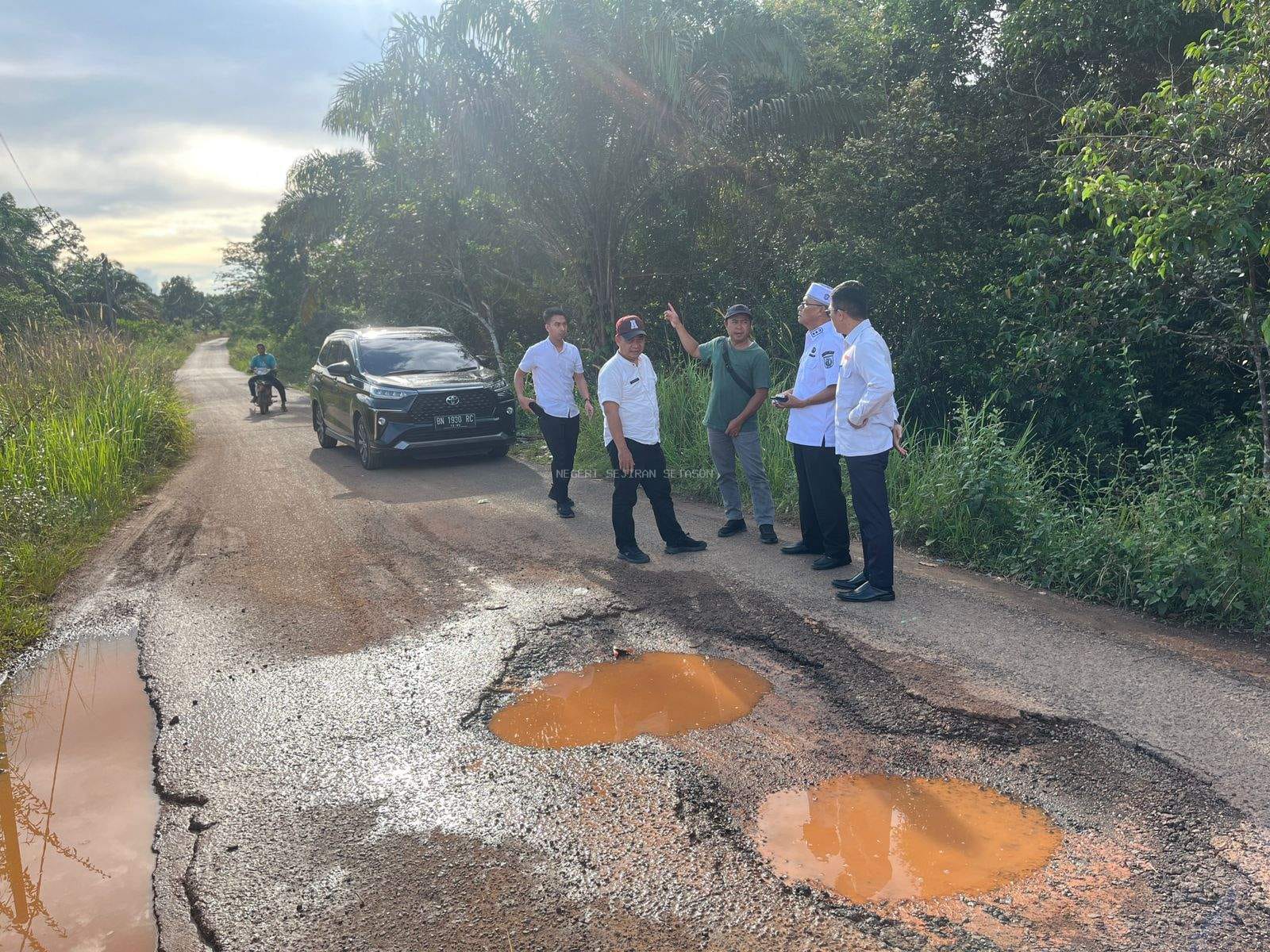 WARTABANGKA.ID, TEMPILANG – Wakil Bupati Bangka Barat Yus Derahman meninjau lokasi jalan rusak di beberapa titik di Kecamatan Tempilang, Rabu ( 9/7 ).