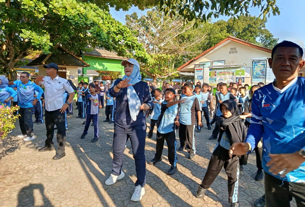 WARTABANGKA.ID, TOBOALI – Wakil Bupati (Wabup) Bangka Selatan (Basel) Debby Vita Dewi mengikuti kegiatan Senam Anak Indonesia Hebat bersama para siswa-siswi SDN 6 Toboali. Kegiatan tersebut digelar dalam momentum Hari Anak Nasional tahun 2025 yang jatuh setiap tanggal 23 Juli.