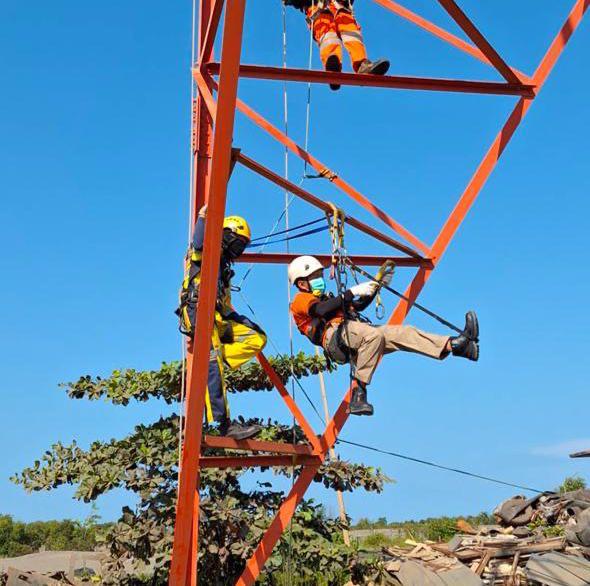 Melibatkan PT Amarta Nusantara Prima sebagai mitra pelatihan, para peserta terdiri dari pegawai dan mitra kerja dari unit pelaksana teknis dibekali materi lengkap, mulai dari penggunaan Alat Pelindung Diri (APD), Alat Pelindung Jatuh Personal (APJP), teknik sistem angkur, pemanjatan struktur tinggi, sistem katrol, hingga simulasi evakuasi darurat. Seluruh rangkaian pelatihan ditutup dengan uji sertifikasi resmi yang mengacu pada standar Kementerian Ketenagakerjaan Republik Indonesia (Kemnaker RI).