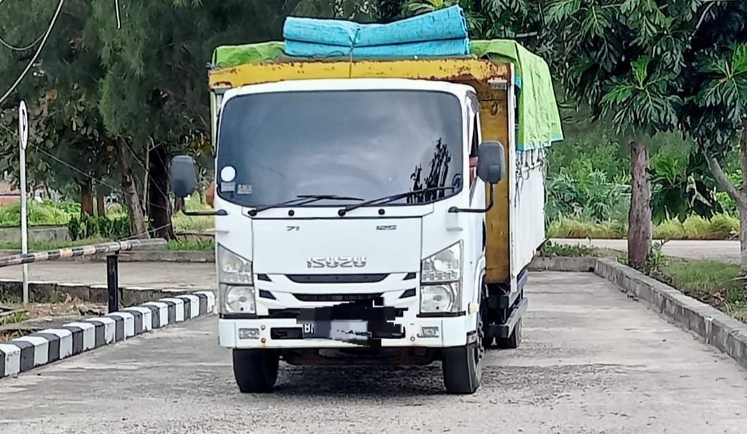 Truk Isuzu putih bernomor polisi BN 86xx WA dengan bak tertutup terpal hijau tersebut masuk ke Pelabuhan Penyeberangan Sadai, Bangka Selatan (Basel) pada Minggu (3/8) dini hari.