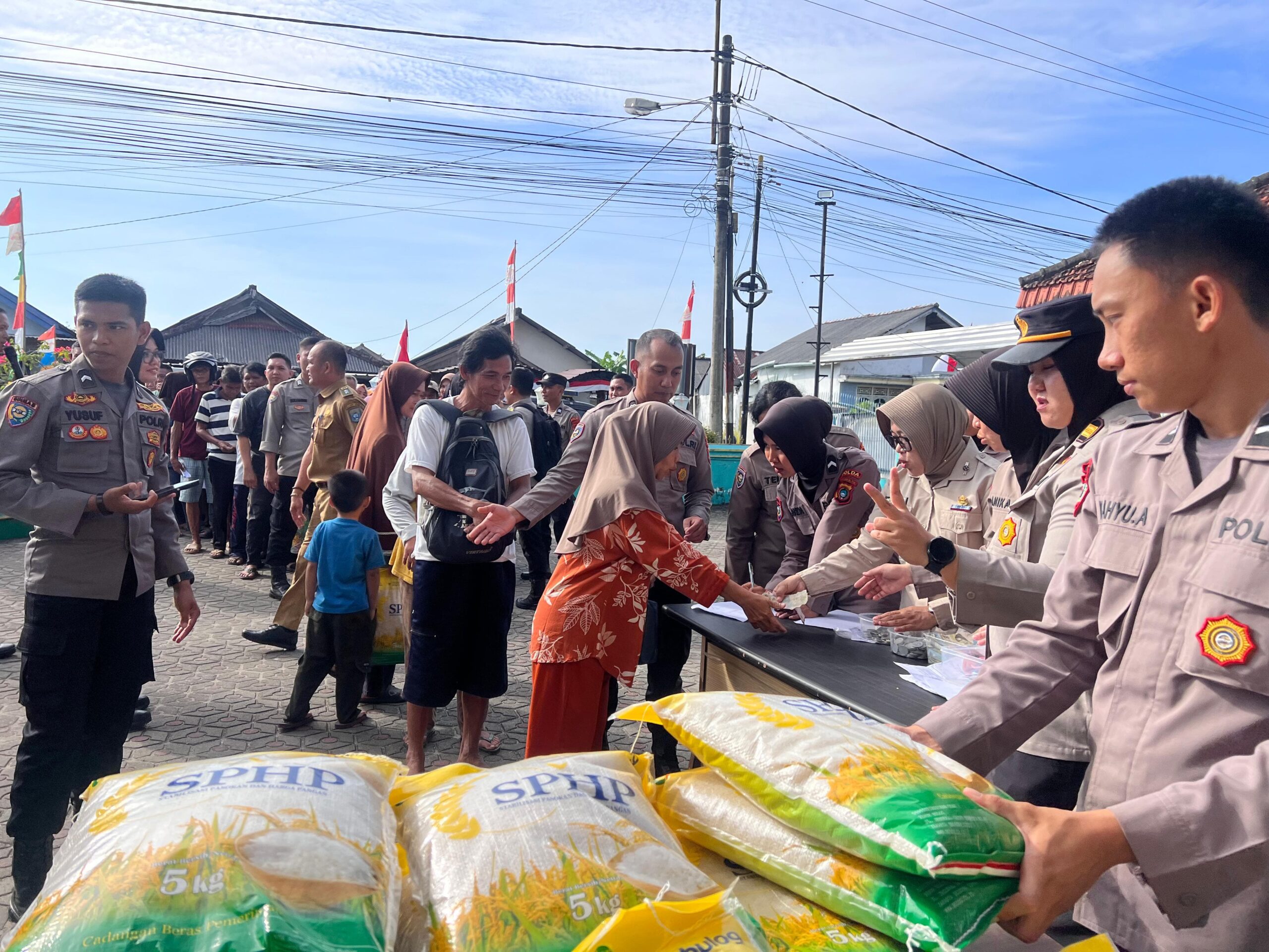 Total ada sebanyak 2 ton beras yang disiapkan Polda Babel untuk masyarakat di Kelurahan Dul ludes terjual.