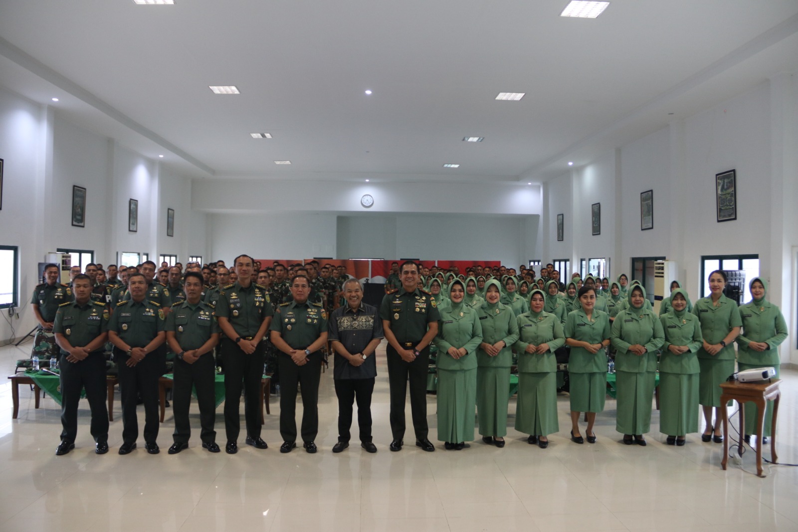 Kegiatan kemudian dilanjutkan dengan pemaparan materi motivasi oleh Dr. Aqua Dwipayana. Dalam penyampaiannya, beliau menekankan pentingnya membangun komunikasi yang sehat, menjaga hubungan baik melalui silaturahmi, serta menumbuhkan semangat juang yang berasal dari kekuatan internal diri setiap prajurit.