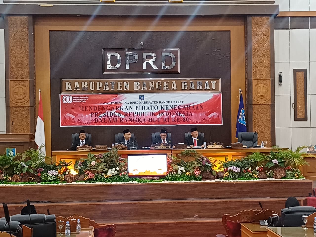 WARTABANGKA.ID, MENTOK – DPRD Kabupaten Bangka Barat melaksanakan rapat paripurna dengan agenda mendengarkan pidato kenegaraan Presiden Republik Indonesia dalam rangka Hari Ulang Tahun (HUT) ke-80 Republik Indonesia di Gedung Mahligai Betason 2, Jum’at (15/8).