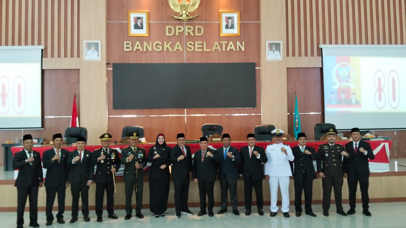 Rapat yang dipimpin Ketua DPRD Basel Erwin Asmadi bersama Wakil Ketua dan anggotanya ini digelar untuk mendengarkan pidato kenegaraan Presiden Republik Indonesia dalam rangka peringatan Hari Ulang Tahun ke-80 Kemerdekaan RI Tahun 2025.