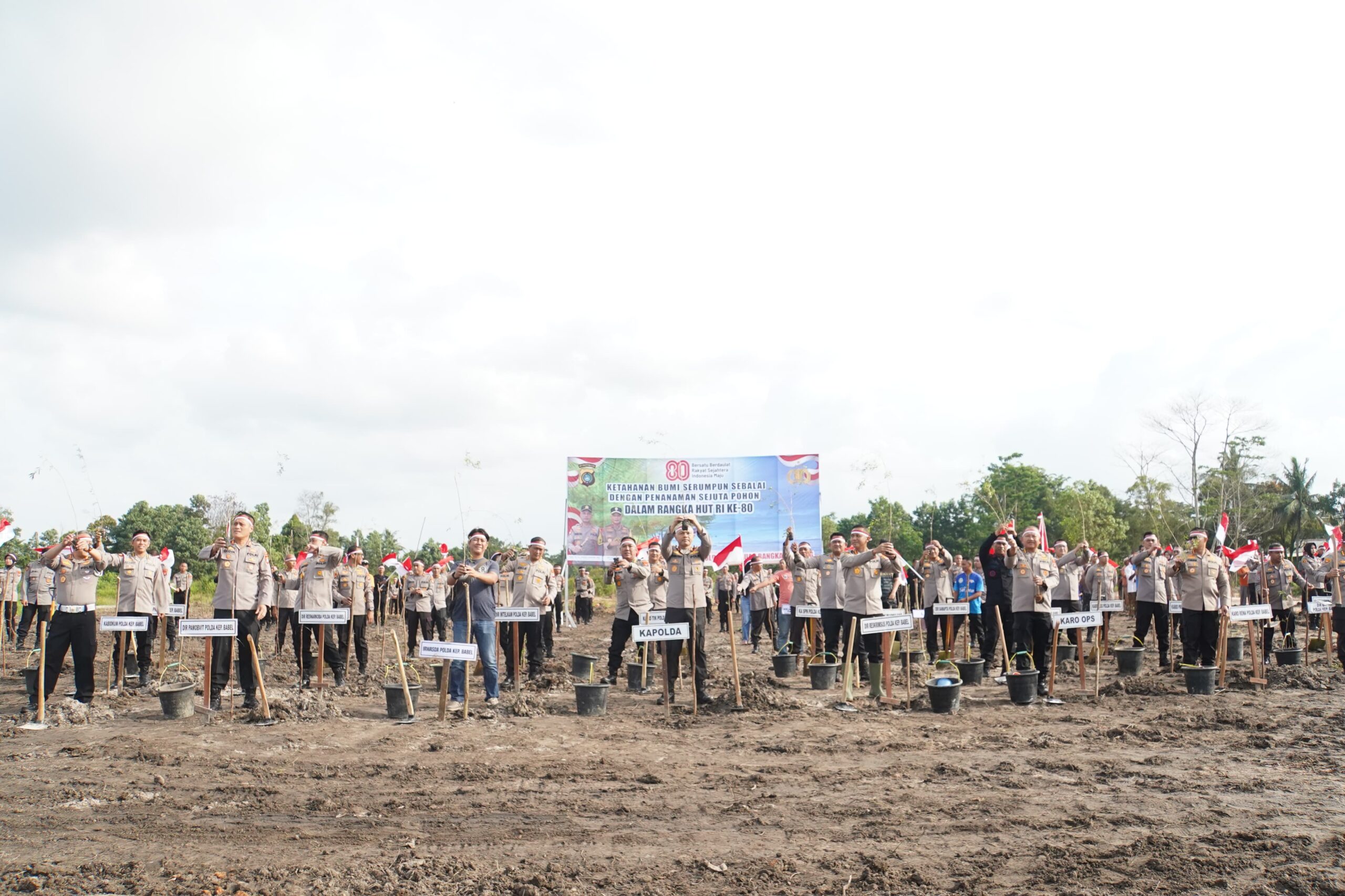 Sambut HUT RI ke 80, Polda Babel dan Jajaran Ajak Masyarakat Tanam Ribuan Bibit Pohon