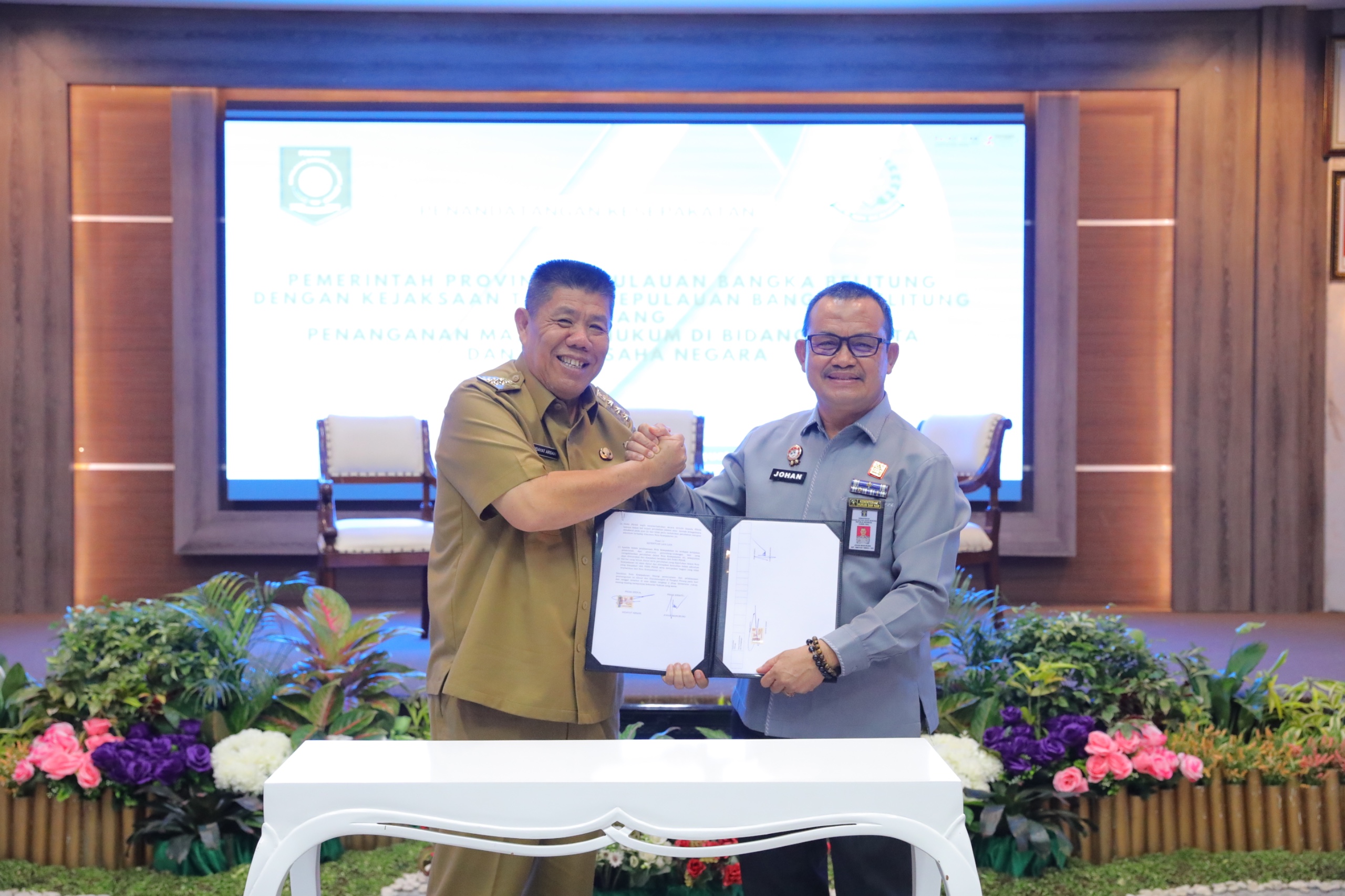 Penandatanganan dilakukan langsung oleh Gubernur Babel Hidayat Arsani, Kepala Kejati Babel Sila Haholongan, dan Kepala Kanwil Hukum Babel Johan Manurung.
