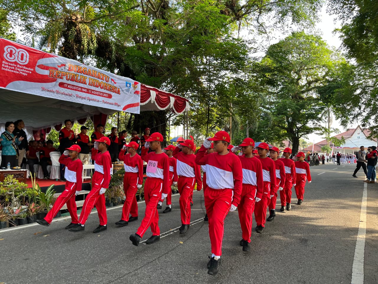 WARTABANGKA.ID, MENTOK – Lomba gerak jalan dari jenjang tingkat pelajar SD hingga SMA, instansi, masyarakat umum di Kecamatan Mentok, Kabupaten Bangka Barat, Provinsi Kepulauan Bangka Belitung (Babel) pada Kamis (28/8) berlangsung meriah.