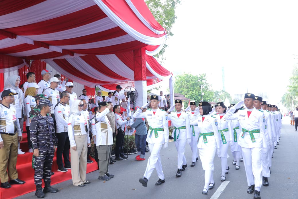 Usai mendampingi Gubernur dan jajaran Forkompinda Kota Pangkalpinang dalam kegiatan Pawai Karnaval HUT ke 80 RI tersebut, Asisten Pemkot Akhmad Subekti kemudian memberikan penghormatan langsung kepada peserta pawai gerak jalan yang melintas.