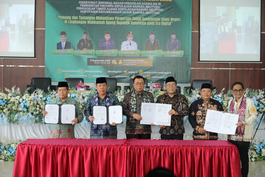 Hal ini dibuktikan dengan penandatanganan Memorandum of Understanding (MoU) bersama Pengadilan Tinggi Agama (PTA) yang berlangsung di Ruang Pertemuan Institut Agama Islam Negeri (IAIN) Syaikh Abdurrahman Siddik, Desa Petaling, Kecamatan Mendo Barat, Kamis (11/9/2025).