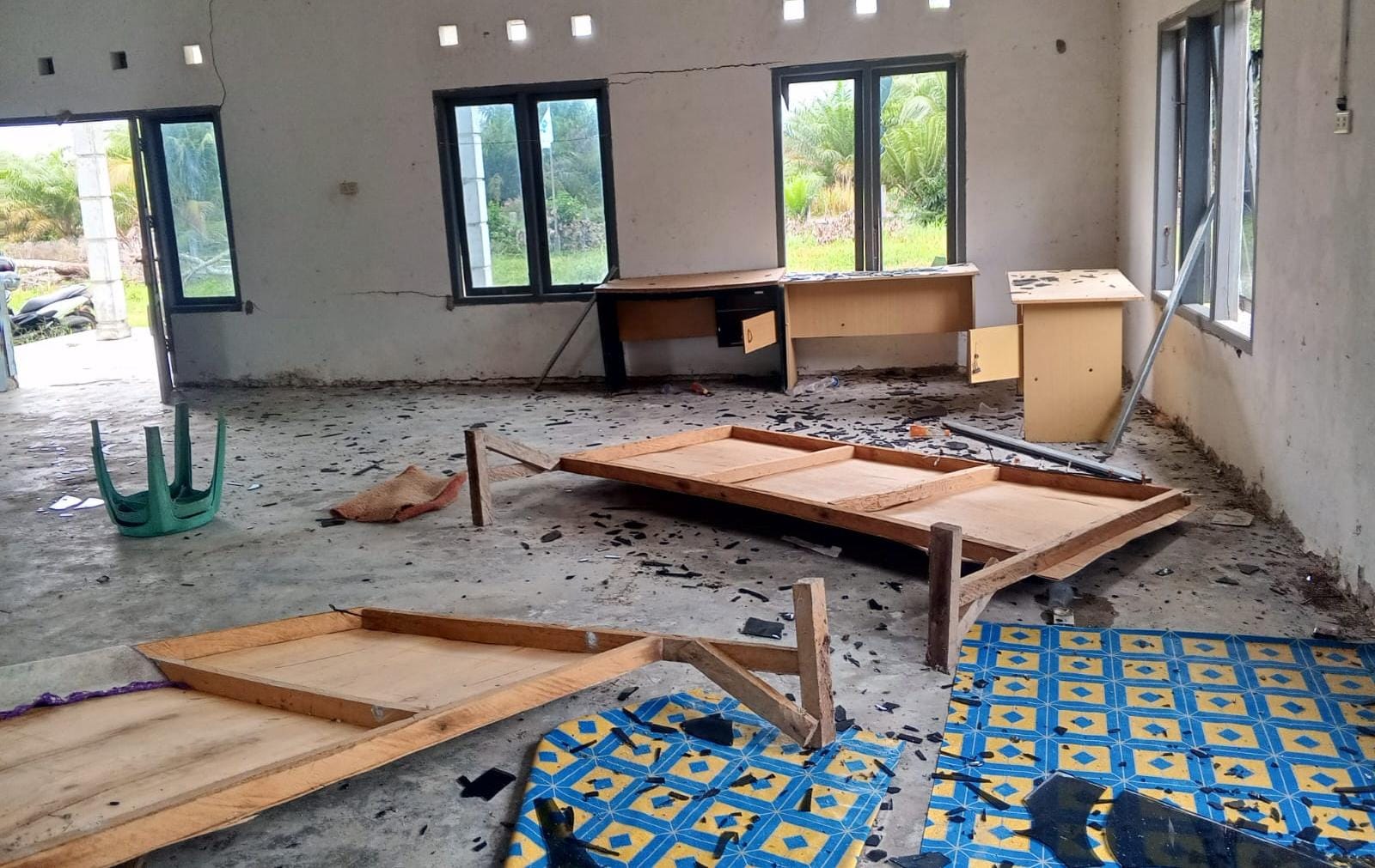 Tak hanya itu, sejumlah fasilitas pos mengalami kerusakan. Kaca mess pecah, satu unit CCTV rusak, hingga sebuah kasur dibakar akibat kejadian itu.