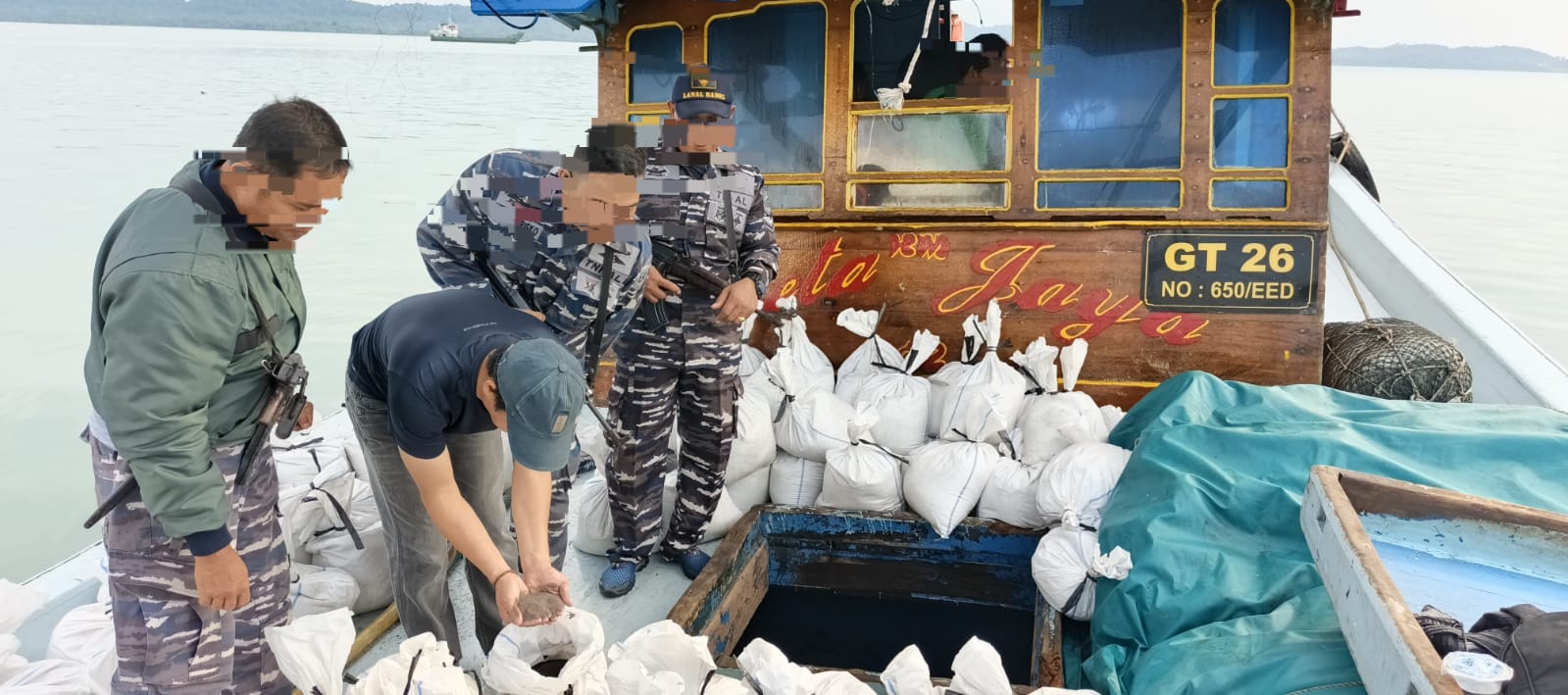 Sesampai di lokasi, memang ditemukan kapal kayu yang bermuatan pasir timah itu. Diduga informasi bocor, para ABK kapal ternyata sudah menyiapkan speed boat untuk melarikan diri.