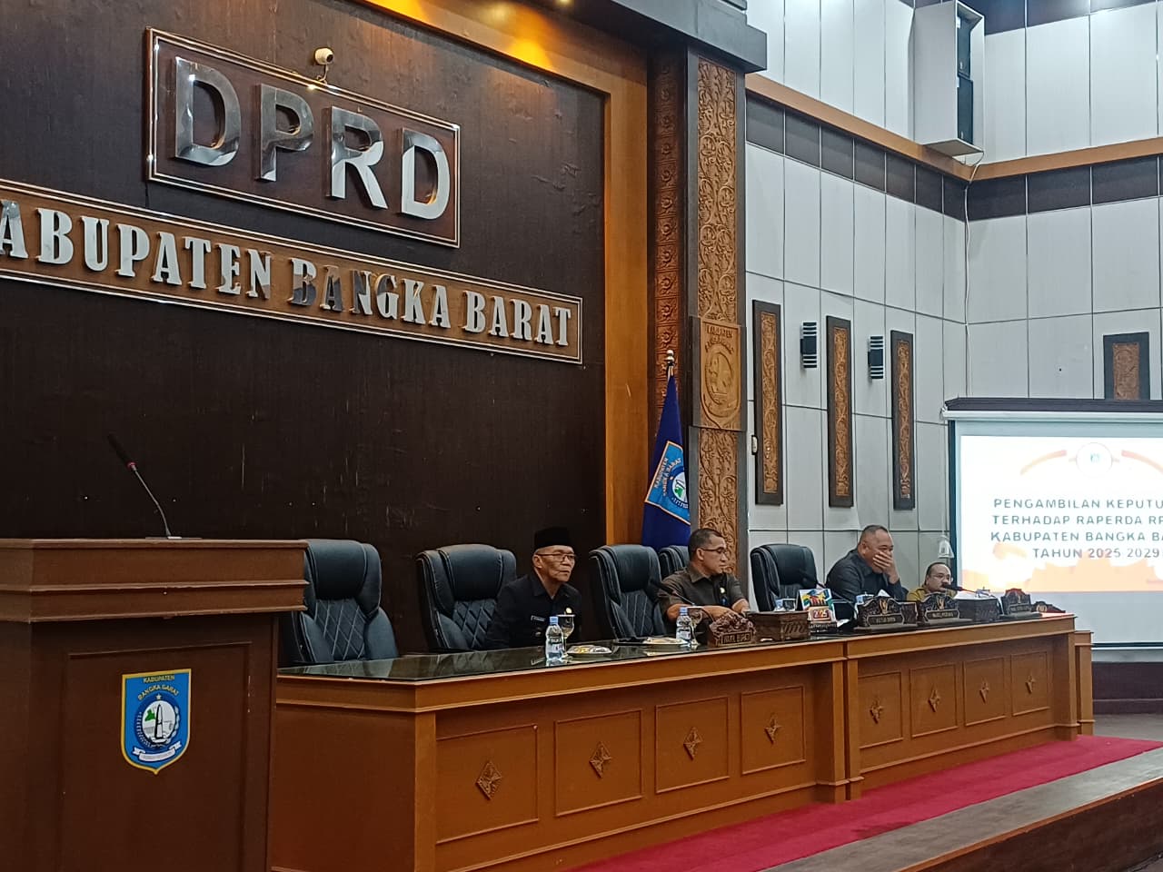 “Rancangan peraturan daerah tentang RPJMD Kabupaten Bangka Barat tahun 2025-2029 telah disampaikan oleh Bupati Bangka Barat pada tanggal 7 Agustus 2025 dan telah selesai dilakukan pembahasan oleh Panitia Khusus Dewan Perwakilan Rakyat Daerah bersama tim dari pemerintah daerah Kabupaten Bangka Barat,” kata Badri.