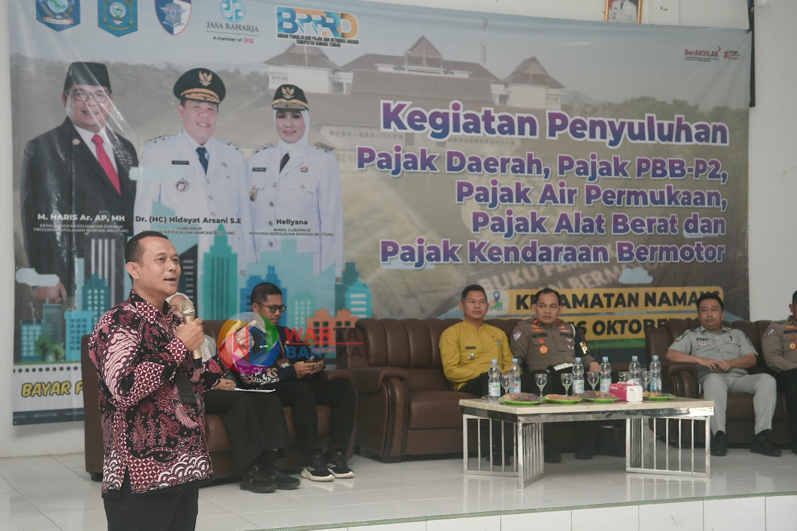 WARTABANGKA.ID, NAMANG – Badan Keuangan Daerah (Bakuda) Provinsi Kepulauan Bangka Belitung (Babel) menggelar kegiatan penyuluhan pajak daerah, PBB-P2, air permukaan, alat berat dan kendaraan bermotor di Kantor Kecamatan Namang, Kamis (16/10).