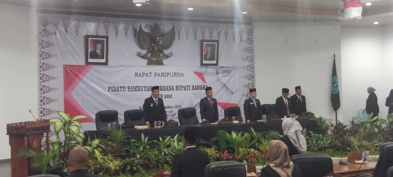 WARTABANGKA.ID, SUNGAILIAT – DPRD Kabupaten Bangka menggelar rapat paripurna pidato sambutan perdana Bupati Bangka Ferry Insani tahun 2025 bertempat di ruang rapat paripurna,Senin (10/11).